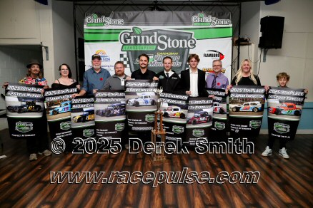 The Canadian Vintage Modifieds held their annual banquet at the Hamilton Air Force Association in Dundas on Saturday November 8. Among the many awards were banners for all of the top drivers, most wins, rookie, hard luck, most improved driver and the president's award. The top 5 drivers this season were TJ Marshall, Ricky Willigar, Ty Riopelle, Rodney Rutherford and Mike Podd. Ron Easton and Chuck Barton were inducted into the Canadian Vintage Modified Hall of Fame. For more info, please see Canadian Vintage Modifieds .
