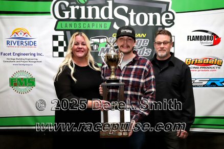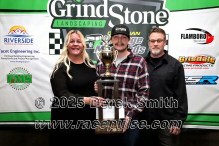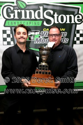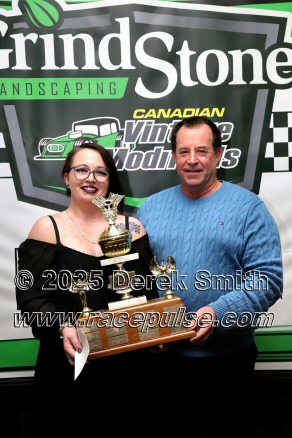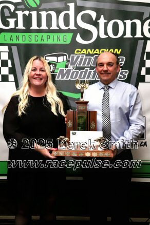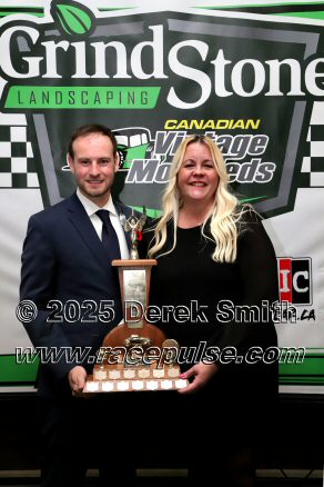 The Canadian Vintage Modifieds held their annual banquet at the Hamilton Air Force Association in Dundas on Saturday November 8. Among the many awards were banners for all of the top drivers, most wins, rookie, hard luck, most improved driver and the president's award. The top 5 drivers this season were TJ Marshall, Ricky Willigar, Ty Riopelle, Rodney Rutherford and Mike Podd. Ron Easton and Chuck Barton were inducted into the Canadian Vintage Modified Hall of Fame. For more info, please see Canadian Vintage Modifieds .