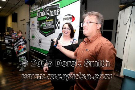 The Canadian Vintage Modifieds held their annual banquet at the Hamilton Air Force Association in Dundas on Saturday November 8. Among the many awards were banners for all of the top drivers, most wins, rookie, hard luck, most improved driver and the president's award. The top 5 drivers this season were TJ Marshall, Ricky Willigar, Ty Riopelle, Rodney Rutherford and Mike Podd. Ron Easton and Chuck Barton were inducted into the Canadian Vintage Modified Hall of Fame. For more info, please see Canadian Vintage Modifieds .