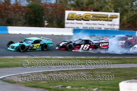 Peterborough Speedway held their annual Autumn Colours Weekend from Friday October 10 through Sunday October 12. Friday featured rounds of practice for Pro Late Models, Super Stocks, Mini Stocks, Legends, Bone Stocks, OMRS Modifieds, Outlaw Midgets, Bandoleros, OSCAAR Modifieds and OSCAAR Hot Rods. Chad Strawn won the OMRS Modifed feature, with John Baker 2nd and Brad Stevenson 3rd. For full official results and more info, please see Peterborough Speedway , OSCAAR with APC Series and Outlaw Midgets .