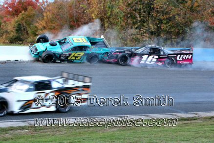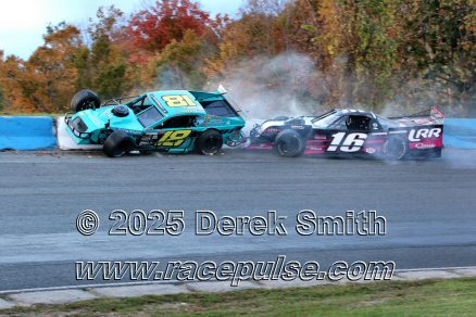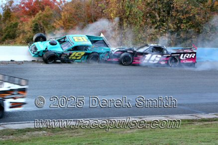 Peterborough Speedway held their annual Autumn Colours Weekend from Friday October 10 through Sunday October 12. Friday featured rounds of practice for Pro Late Models, Super Stocks, Mini Stocks, Legends, Bone Stocks, OMRS Modifieds, Outlaw Midgets, Bandoleros, OSCAAR Modifieds and OSCAAR Hot Rods. Chad Strawn won the OMRS Modifed feature, with John Baker 2nd and Brad Stevenson 3rd. For full official results and more info, please see Peterborough Speedway , OSCAAR with APC Series and Outlaw Midgets .