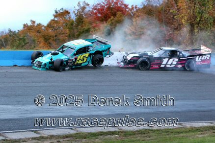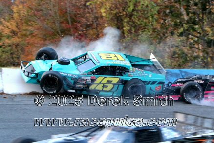Peterborough Speedway held their annual Autumn Colours Weekend from Friday October 10 through Sunday October 12. Friday featured rounds of practice for Pro Late Models, Super Stocks, Mini Stocks, Legends, Bone Stocks, OMRS Modifieds, Outlaw Midgets, Bandoleros, OSCAAR Modifieds and OSCAAR Hot Rods. Chad Strawn won the OMRS Modifed feature, with John Baker 2nd and Brad Stevenson 3rd. For full official results and more info, please see Peterborough Speedway , OSCAAR with APC Series and Outlaw Midgets .