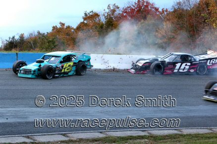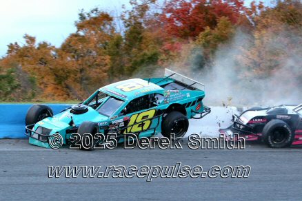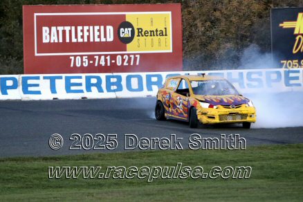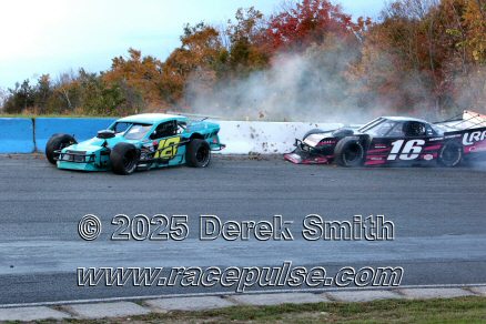 Peterborough Speedway held their annual Autumn Colours Weekend from Friday October 10 through Sunday October 12. Friday featured rounds of practice for Pro Late Models, Super Stocks, Mini Stocks, Legends, Bone Stocks, OMRS Modifieds, Outlaw Midgets, Bandoleros, OSCAAR Modifieds and OSCAAR Hot Rods. Chad Strawn won the OMRS Modifed feature, with John Baker 2nd and Brad Stevenson 3rd. For full official results and more info, please see Peterborough Speedway , OSCAAR with APC Series and Outlaw Midgets .