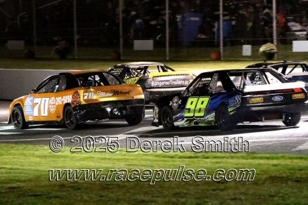 Peterborough Speedway held their annual Autumn Colours Weekend from Friday October 10 through Sunday October 12. Today the rain wiped out much of the practice, delayed the racing, and pushed some of the qualifying until tomorrow. The Pro Late Models did tire scruffing, and some qualifying and features did take place. Robin McLean won the Outlaw Midget feature with Series Champion Mike Bradley finishing second. Landon Sellers won the Bandoleros feature, followed by Lyla Sikma and Ava Bounds. For full official results and more info, please see Peterborough Speedway , OSCAAR with APC Series and Outlaw Midgets .