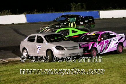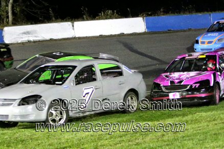Peterborough Speedway held their annual Autumn Colours Weekend from Friday October 10 through Sunday October 12. Today the rain wiped out much of the practice, delayed the racing, and pushed some of the qualifying until tomorrow. The Pro Late Models did tire scruffing, and some qualifying and features did take place. Robin McLean won the Outlaw Midget feature with Series Champion Mike Bradley finishing second. Landon Sellers won the Bandoleros feature, followed by Lyla Sikma and Ava Bounds. For full official results and more info, please see Peterborough Speedway , OSCAAR with APC Series and Outlaw Midgets .