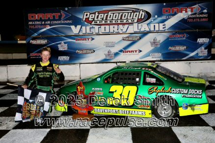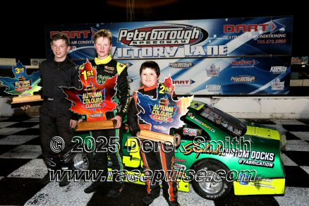 Peterborough Speedway held their annual Autumn Colours Weekend from Friday October 10 through Sunday October 12. Today the rain wiped out much of the practice, delayed the racing, and pushed some of the qualifying until tomorrow. The Pro Late Models did tire scruffing, and some qualifying and features did take place. Robin McLean won the Outlaw Midget feature with Series Champion Mike Bradley finishing second. Landon Sellers won the Bandoleros feature, followed by Lyla Sikma and Ava Bounds. For full official results and more info, please see Peterborough Speedway , OSCAAR with APC Series and Outlaw Midgets .