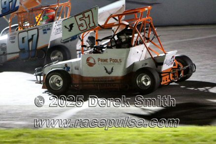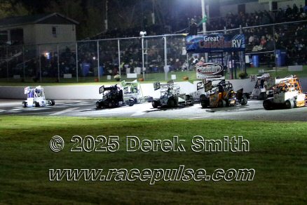 Peterborough Speedway held their annual Autumn Colours Weekend from Friday October 10 through Sunday October 12. Today the rain wiped out much of the practice, delayed the racing, and pushed some of the qualifying until tomorrow. The Pro Late Models did tire scruffing, and some qualifying and features did take place. Robin McLean won the Outlaw Midget feature with Series Champion Mike Bradley finishing second. Landon Sellers won the Bandoleros feature, followed by Lyla Sikma and Ava Bounds. For full official results and more info, please see Peterborough Speedway , OSCAAR with APC Series and Outlaw Midgets .