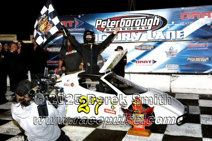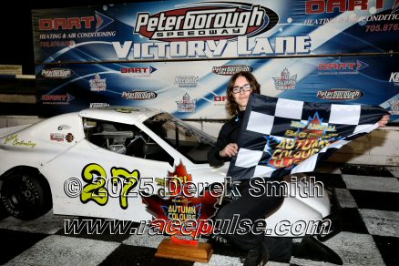 Peterborough Speedway held their annual Autumn Colours Weekend from Friday October 10 through Sunday October 12. Today the rain wiped out much of the practice, delayed the racing, and pushed some of the qualifying until tomorrow. The Pro Late Models did tire scruffing, and some qualifying and features did take place. Robin McLean won the Outlaw Midget feature with Series Champion Mike Bradley finishing second. Landon Sellers won the Bandoleros feature, followed by Lyla Sikma and Ava Bounds. For full official results and more info, please see Peterborough Speedway , OSCAAR with APC Series and Outlaw Midgets .
