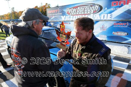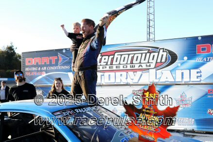 Peterborough Speedway held their annual Autumn Colours Weekend from Friday October 10 through Sunday October 12. Today started with a 167 lap race for the Pro Late Models, followed by some postponed qualifying, and features for Super Stocks, Mini Stocks, Legends, Bone Stocks, OSCAAR Modifieds and OSCAAR Hot Rods. Jake Sheridan won the Pro Late Model feature, followed by Rick Spencer-Walt, Dale Shaw, Dustin Mombourquette and Dan McHattie. Phil Givens won the Bone Stock feature, with Jo Lawrence a very close 2nd and Jordan Wilmms 3rd. Tyler Hawn won the OSCAAR Hot Rod feature, followed by Mark Gordon and Luke Gignac. Doug Butler won the Mini Stock feature, with James Townsend 2nd and Jacob Sutcliffe 3rd. Amand Balson finished first in the OSCAAR Mofifed feature, but was DQ'd in tech. Max Beyore finished next, with TJ Edwards and Jason Keen following. The top 3 in the Legends feature were Mitch Wright, Parker Travis and Adam Cuthbertson. Shawn Chenoweth won the Super Stock feature, followed by Daniel Hawn and Marlie Owen. For full official results and more info, please see Peterborough Speedway and OSCAAR with APC Series .