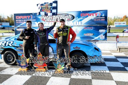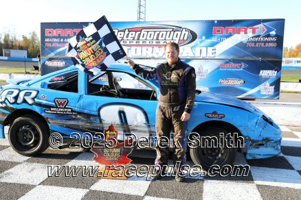 Peterborough Speedway held their annual Autumn Colours Weekend from Friday October 10 through Sunday October 12. Today started with a 167 lap race for the Pro Late Models, followed by some postponed qualifying, and features for Super Stocks, Mini Stocks, Legends, Bone Stocks, OSCAAR Modifieds and OSCAAR Hot Rods. Jake Sheridan won the Pro Late Model feature, followed by Rick Spencer-Walt, Dale Shaw, Dustin Mombourquette and Dan McHattie. Phil Givens won the Bone Stock feature, with Jo Lawrence a very close 2nd and Jordan Wilmms 3rd. Tyler Hawn won the OSCAAR Hot Rod feature, followed by Mark Gordon and Luke Gignac. Doug Butler won the Mini Stock feature, with James Townsend 2nd and Jacob Sutcliffe 3rd. Amand Balson finished first in the OSCAAR Mofifed feature, but was DQ'd in tech. Max Beyore finished next, with TJ Edwards and Jason Keen following. The top 3 in the Legends feature were Mitch Wright, Parker Travis and Adam Cuthbertson. Shawn Chenoweth won the Super Stock feature, followed by Daniel Hawn and Marlie Owen. For full official results and more info, please see Peterborough Speedway and OSCAAR with APC Series .