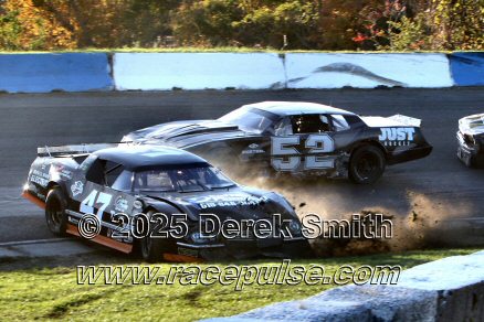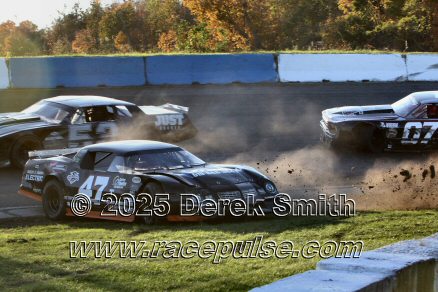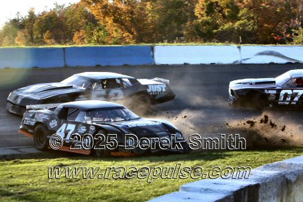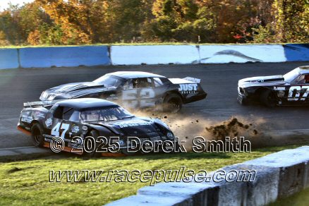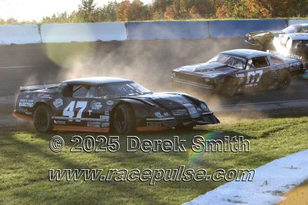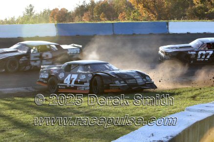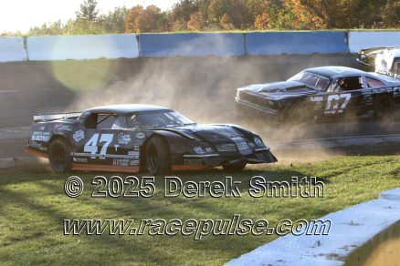Peterborough Speedway held their annual Autumn Colours Weekend from Friday October 10 through Sunday October 12. Today started with a 167 lap race for the Pro Late Models, followed by some postponed qualifying, and features for Super Stocks, Mini Stocks, Legends, Bone Stocks, OSCAAR Modifieds and OSCAAR Hot Rods. Jake Sheridan won the Pro Late Model feature, followed by Rick Spencer-Walt, Dale Shaw, Dustin Mombourquette and Dan McHattie. Phil Givens won the Bone Stock feature, with Jo Lawrence a very close 2nd and Jordan Wilmms 3rd. Tyler Hawn won the OSCAAR Hot Rod feature, followed by Mark Gordon and Luke Gignac. Doug Butler won the Mini Stock feature, with James Townsend 2nd and Jacob Sutcliffe 3rd. Amand Balson finished first in the OSCAAR Mofifed feature, but was DQ'd in tech. Max Beyore finished next, with TJ Edwards and Jason Keen following. The top 3 in the Legends feature were Mitch Wright, Parker Travis and Adam Cuthbertson. Shawn Chenoweth won the Super Stock feature, followed by Daniel Hawn and Marlie Owen. For full official results and more info, please see Peterborough Speedway and OSCAAR with APC Series .