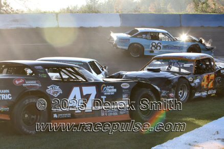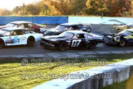 Peterborough Speedway held their annual Autumn Colours Weekend from Friday October 10 through Sunday October 12. Today started with a 167 lap race for the Pro Late Models, followed by some postponed qualifying, and features for Super Stocks, Mini Stocks, Legends, Bone Stocks, OSCAAR Modifieds and OSCAAR Hot Rods. Jake Sheridan won the Pro Late Model feature, followed by Rick Spencer-Walt, Dale Shaw, Dustin Mombourquette and Dan McHattie. Phil Givens won the Bone Stock feature, with Jo Lawrence a very close 2nd and Jordan Wilmms 3rd. Tyler Hawn won the OSCAAR Hot Rod feature, followed by Mark Gordon and Luke Gignac. Doug Butler won the Mini Stock feature, with James Townsend 2nd and Jacob Sutcliffe 3rd. Amand Balson finished first in the OSCAAR Mofifed feature, but was DQ'd in tech. Max Beyore finished next, with TJ Edwards and Jason Keen following. The top 3 in the Legends feature were Mitch Wright, Parker Travis and Adam Cuthbertson. Shawn Chenoweth won the Super Stock feature, followed by Daniel Hawn and Marlie Owen. For full official results and more info, please see Peterborough Speedway and OSCAAR with APC Series .