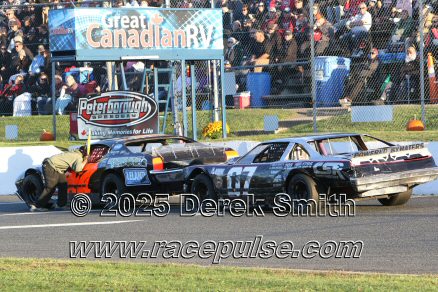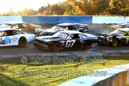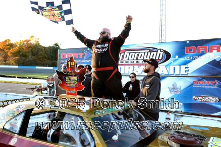 Peterborough Speedway held their annual Autumn Colours Weekend from Friday October 10 through Sunday October 12. Today started with a 167 lap race for the Pro Late Models, followed by some postponed qualifying, and features for Super Stocks, Mini Stocks, Legends, Bone Stocks, OSCAAR Modifieds and OSCAAR Hot Rods. Jake Sheridan won the Pro Late Model feature, followed by Rick Spencer-Walt, Dale Shaw, Dustin Mombourquette and Dan McHattie. Phil Givens won the Bone Stock feature, with Jo Lawrence a very close 2nd and Jordan Wilmms 3rd. Tyler Hawn won the OSCAAR Hot Rod feature, followed by Mark Gordon and Luke Gignac. Doug Butler won the Mini Stock feature, with James Townsend 2nd and Jacob Sutcliffe 3rd. Amand Balson finished first in the OSCAAR Mofifed feature, but was DQ'd in tech. Max Beyore finished next, with TJ Edwards and Jason Keen following. The top 3 in the Legends feature were Mitch Wright, Parker Travis and Adam Cuthbertson. Shawn Chenoweth won the Super Stock feature, followed by Daniel Hawn and Marlie Owen. For full official results and more info, please see Peterborough Speedway and OSCAAR with APC Series .