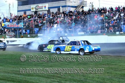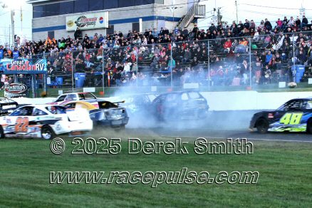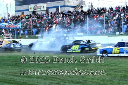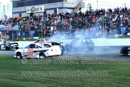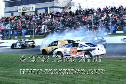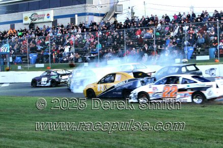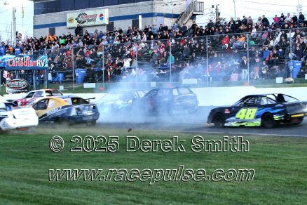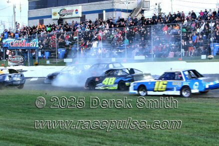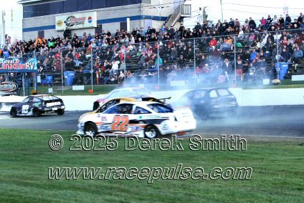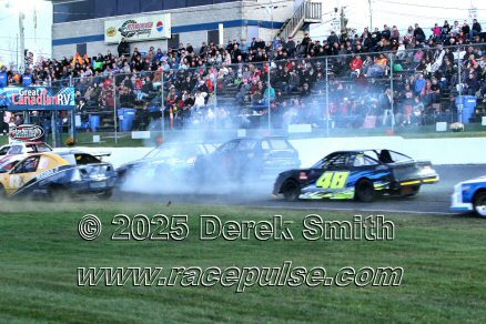 Peterborough Speedway held their annual Autumn Colours Weekend from Friday October 10 through Sunday October 12. Today started with a 167 lap race for the Pro Late Models, followed by some postponed qualifying, and features for Super Stocks, Mini Stocks, Legends, Bone Stocks, OSCAAR Modifieds and OSCAAR Hot Rods. Jake Sheridan won the Pro Late Model feature, followed by Rick Spencer-Walt, Dale Shaw, Dustin Mombourquette and Dan McHattie. Phil Givens won the Bone Stock feature, with Jo Lawrence a very close 2nd and Jordan Wilmms 3rd. Tyler Hawn won the OSCAAR Hot Rod feature, followed by Mark Gordon and Luke Gignac. Doug Butler won the Mini Stock feature, with James Townsend 2nd and Jacob Sutcliffe 3rd. Amand Balson finished first in the OSCAAR Mofifed feature, but was DQ'd in tech. Max Beyore finished next, with TJ Edwards and Jason Keen following. The top 3 in the Legends feature were Mitch Wright, Parker Travis and Adam Cuthbertson. Shawn Chenoweth won the Super Stock feature, followed by Daniel Hawn and Marlie Owen. For full official results and more info, please see Peterborough Speedway and OSCAAR with APC Series .
