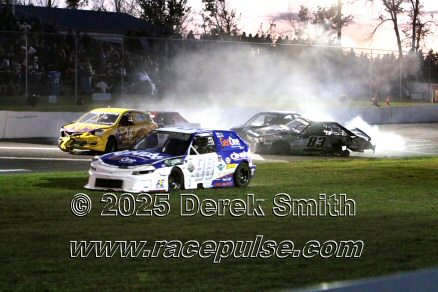 Peterborough Speedway held their annual Autumn Colours Weekend from Friday October 10 through Sunday October 12. Today started with a 167 lap race for the Pro Late Models, followed by some postponed qualifying, and features for Super Stocks, Mini Stocks, Legends, Bone Stocks, OSCAAR Modifieds and OSCAAR Hot Rods. Jake Sheridan won the Pro Late Model feature, followed by Rick Spencer-Walt, Dale Shaw, Dustin Mombourquette and Dan McHattie. Phil Givens won the Bone Stock feature, with Jo Lawrence a very close 2nd and Jordan Wilmms 3rd. Tyler Hawn won the OSCAAR Hot Rod feature, followed by Mark Gordon and Luke Gignac. Doug Butler won the Mini Stock feature, with James Townsend 2nd and Jacob Sutcliffe 3rd. Amand Balson finished first in the OSCAAR Mofifed feature, but was DQ'd in tech. Max Beyore finished next, with TJ Edwards and Jason Keen following. The top 3 in the Legends feature were Mitch Wright, Parker Travis and Adam Cuthbertson. Shawn Chenoweth won the Super Stock feature, followed by Daniel Hawn and Marlie Owen. For full official results and more info, please see Peterborough Speedway and OSCAAR with APC Series .