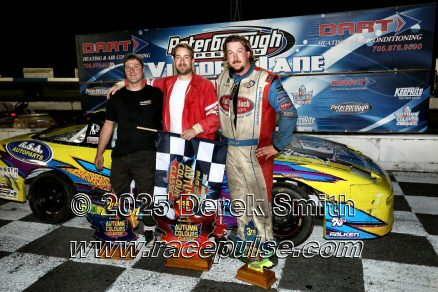 Peterborough Speedway held their annual Autumn Colours Weekend from Friday October 10 through Sunday October 12. Today started with a 167 lap race for the Pro Late Models, followed by some postponed qualifying, and features for Super Stocks, Mini Stocks, Legends, Bone Stocks, OSCAAR Modifieds and OSCAAR Hot Rods. Jake Sheridan won the Pro Late Model feature, followed by Rick Spencer-Walt, Dale Shaw, Dustin Mombourquette and Dan McHattie. Phil Givens won the Bone Stock feature, with Jo Lawrence a very close 2nd and Jordan Wilmms 3rd. Tyler Hawn won the OSCAAR Hot Rod feature, followed by Mark Gordon and Luke Gignac. Doug Butler won the Mini Stock feature, with James Townsend 2nd and Jacob Sutcliffe 3rd. Amand Balson finished first in the OSCAAR Mofifed feature, but was DQ'd in tech. Max Beyore finished next, with TJ Edwards and Jason Keen following. The top 3 in the Legends feature were Mitch Wright, Parker Travis and Adam Cuthbertson. Shawn Chenoweth won the Super Stock feature, followed by Daniel Hawn and Marlie Owen. For full official results and more info, please see Peterborough Speedway and OSCAAR with APC Series .