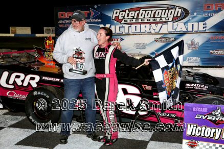 Peterborough Speedway held their annual Autumn Colours Weekend from Friday October 10 through Sunday October 12. Today started with a 167 lap race for the Pro Late Models, followed by some postponed qualifying, and features for Super Stocks, Mini Stocks, Legends, Bone Stocks, OSCAAR Modifieds and OSCAAR Hot Rods. Jake Sheridan won the Pro Late Model feature, followed by Rick Spencer-Walt, Dale Shaw, Dustin Mombourquette and Dan McHattie. Phil Givens won the Bone Stock feature, with Jo Lawrence a very close 2nd and Jordan Wilmms 3rd. Tyler Hawn won the OSCAAR Hot Rod feature, followed by Mark Gordon and Luke Gignac. Doug Butler won the Mini Stock feature, with James Townsend 2nd and Jacob Sutcliffe 3rd. Amand Balson finished first in the OSCAAR Mofifed feature, but was DQ'd in tech. Max Beyore finished next, with TJ Edwards and Jason Keen following. The top 3 in the Legends feature were Mitch Wright, Parker Travis and Adam Cuthbertson. Shawn Chenoweth won the Super Stock feature, followed by Daniel Hawn and Marlie Owen. For full official results and more info, please see Peterborough Speedway and OSCAAR with APC Series .