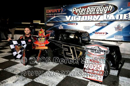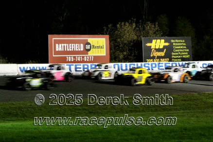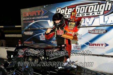 Peterborough Speedway held their annual Autumn Colours Weekend from Friday October 10 through Sunday October 12. Today started with a 167 lap race for the Pro Late Models, followed by some postponed qualifying, and features for Super Stocks, Mini Stocks, Legends, Bone Stocks, OSCAAR Modifieds and OSCAAR Hot Rods. Jake Sheridan won the Pro Late Model feature, followed by Rick Spencer-Walt, Dale Shaw, Dustin Mombourquette and Dan McHattie. Phil Givens won the Bone Stock feature, with Jo Lawrence a very close 2nd and Jordan Wilmms 3rd. Tyler Hawn won the OSCAAR Hot Rod feature, followed by Mark Gordon and Luke Gignac. Doug Butler won the Mini Stock feature, with James Townsend 2nd and Jacob Sutcliffe 3rd. Amand Balson finished first in the OSCAAR Mofifed feature, but was DQ'd in tech. Max Beyore finished next, with TJ Edwards and Jason Keen following. The top 3 in the Legends feature were Mitch Wright, Parker Travis and Adam Cuthbertson. Shawn Chenoweth won the Super Stock feature, followed by Daniel Hawn and Marlie Owen. For full official results and more info, please see Peterborough Speedway and OSCAAR with APC Series .