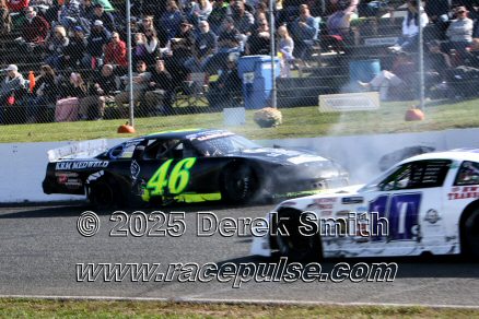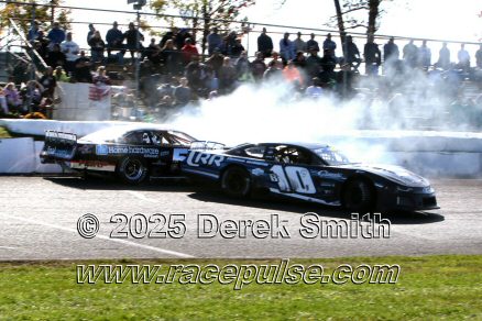 Peterborough Speedway held their annual Autumn Colours Weekend from Friday October 10 through Sunday October 12. Today started with a 167 lap race for the Pro Late Models, followed by some postponed qualifying, and features for Super Stocks, Mini Stocks, Legends, Bone Stocks, OSCAAR Modifieds and OSCAAR Hot Rods. Jake Sheridan won the Pro Late Model feature, followed by Rick Spencer-Walt, Dale Shaw, Dustin Mombourquette and Dan McHattie. Phil Givens won the Bone Stock feature, with Jo Lawrence a very close 2nd and Jordan Wilmms 3rd. Tyler Hawn won the OSCAAR Hot Rod feature, followed by Mark Gordon and Luke Gignac. Doug Butler won the Mini Stock feature, with James Townsend 2nd and Jacob Sutcliffe 3rd. Amand Balson finished first in the OSCAAR Mofifed feature, but was DQ'd in tech. Max Beyore finished next, with TJ Edwards and Jason Keen following. The top 3 in the Legends feature were Mitch Wright, Parker Travis and Adam Cuthbertson. Shawn Chenoweth won the Super Stock feature, followed by Daniel Hawn and Marlie Owen. For full official results and more info, please see Peterborough Speedway and OSCAAR with APC Series .