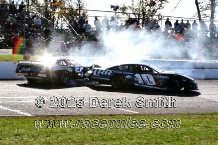 Peterborough Speedway held their annual Autumn Colours Weekend from Friday October 10 through Sunday October 12. Today started with a 167 lap race for the Pro Late Models, followed by some postponed qualifying, and features for Super Stocks, Mini Stocks, Legends, Bone Stocks, OSCAAR Modifieds and OSCAAR Hot Rods. Jake Sheridan won the Pro Late Model feature, followed by Rick Spencer-Walt, Dale Shaw, Dustin Mombourquette and Dan McHattie. Phil Givens won the Bone Stock feature, with Jo Lawrence a very close 2nd and Jordan Wilmms 3rd. Tyler Hawn won the OSCAAR Hot Rod feature, followed by Mark Gordon and Luke Gignac. Doug Butler won the Mini Stock feature, with James Townsend 2nd and Jacob Sutcliffe 3rd. Amand Balson finished first in the OSCAAR Mofifed feature, but was DQ'd in tech. Max Beyore finished next, with TJ Edwards and Jason Keen following. The top 3 in the Legends feature were Mitch Wright, Parker Travis and Adam Cuthbertson. Shawn Chenoweth won the Super Stock feature, followed by Daniel Hawn and Marlie Owen. For full official results and more info, please see Peterborough Speedway and OSCAAR with APC Series .