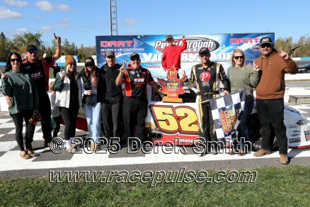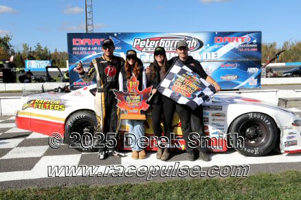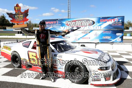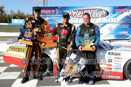 Peterborough Speedway held their annual Autumn Colours Weekend from Friday October 10 through Sunday October 12. Today started with a 167 lap race for the Pro Late Models, followed by some postponed qualifying, and features for Super Stocks, Mini Stocks, Legends, Bone Stocks, OSCAAR Modifieds and OSCAAR Hot Rods. Jake Sheridan won the Pro Late Model feature, followed by Rick Spencer-Walt, Dale Shaw, Dustin Mombourquette and Dan McHattie. Phil Givens won the Bone Stock feature, with Jo Lawrence a very close 2nd and Jordan Wilmms 3rd. Tyler Hawn won the OSCAAR Hot Rod feature, followed by Mark Gordon and Luke Gignac. Doug Butler won the Mini Stock feature, with James Townsend 2nd and Jacob Sutcliffe 3rd. Amand Balson finished first in the OSCAAR Mofifed feature, but was DQ'd in tech. Max Beyore finished next, with TJ Edwards and Jason Keen following. The top 3 in the Legends feature were Mitch Wright, Parker Travis and Adam Cuthbertson. Shawn Chenoweth won the Super Stock feature, followed by Daniel Hawn and Marlie Owen. For full official results and more info, please see Peterborough Speedway and OSCAAR with APC Series .