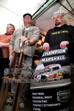 The Canadian Vintage Modifieds held their annual banquet at the Hamilton Air Force Association in Dundas on Saturday November 8. Among the many awards were banners for all of the top drivers, most wins, rookie, hard luck, most improved driver and the president's award. The top 5 drivers this season were TJ Marshall, Ricky Willigar, Ty Riopelle, Rodney Rutherford and Mike Podd. Ron Easton and Chuck Barton were inducted into the Canadian Vintage Modified Hall of Fame. For more info, please see Canadian Vintage Modifieds .