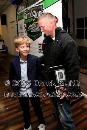 The Canadian Vintage Modifieds held their annual banquet at the Hamilton Air Force Association in Dundas on Saturday November 8. Among the many awards were banners for all of the top drivers, most wins, rookie, hard luck, most improved driver and the president's award. The top 5 drivers this season were TJ Marshall, Ricky Willigar, Ty Riopelle, Rodney Rutherford and Mike Podd. Ron Easton and Chuck Barton were inducted into the Canadian Vintage Modified Hall of Fame. For more info, please see Canadian Vintage Modifieds .